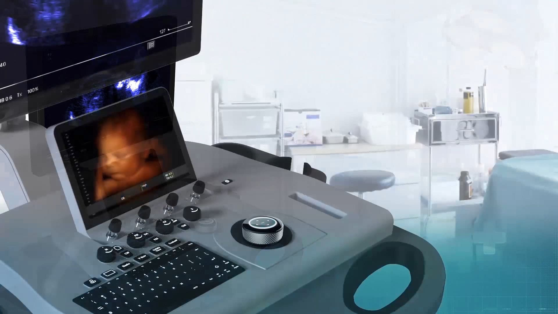 Figure 2: On this ultrasound panel, a Touch Encoder replaced four switches, a trackball, and eight buttons.