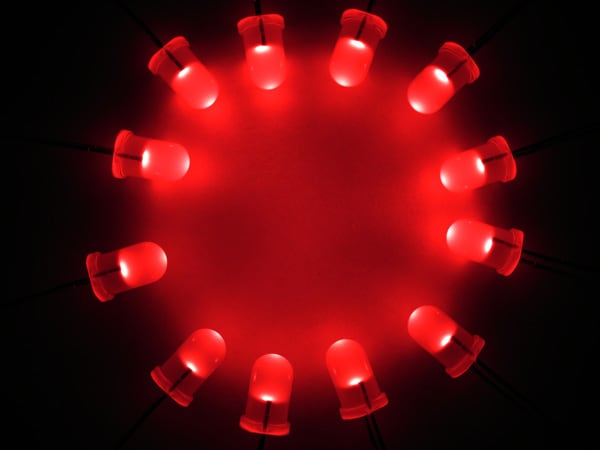 Next is notification. How do I want to be informed of a possible inbound creeper? At first I consider a buzzer, but that would give away my position and might attract more trouble than it’s worth. It might scare away a possible dinner as well. Then I come across the idea of using LEDs and placing them in a circle that directly mirrors the placement of the PIR sensors outside. That way if something does set off one of the sensors I will know where it’s coming from. I will have to place a dozen PIR sensors for full coverage, so I position the LEDs in a circle with a roughly 30-degree separation in between each one.